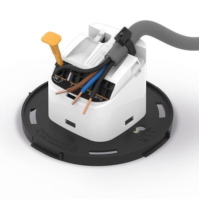 Nikos unikke SnapFit-system sikrer en hurtig og stabil montering i alle typer lofter. Sensoren monteres let med en simpel drej-og-klik-bevægelse, hvilket sparer tid og besvær ved både installation og demontering. De skrueløse og let tilgængelige plug-in terminaler gør installationen endnu nemmere, og kabelaflastning samt montering af kabeldæksel kan udføres uden brug af værktøj.