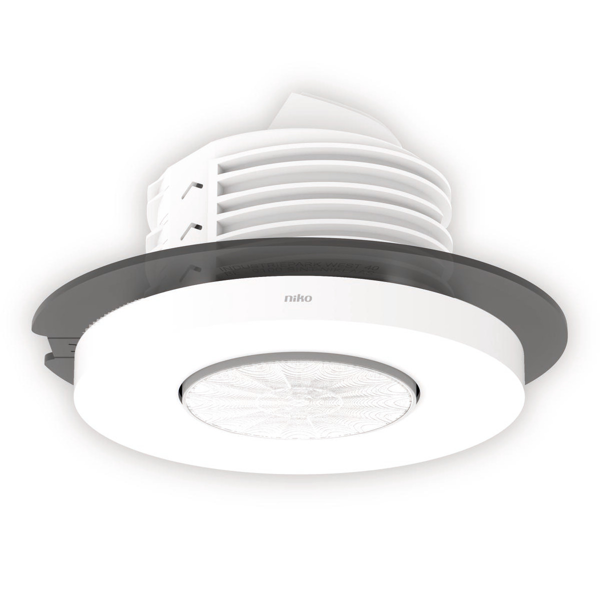 Sensoren har et fladt og diskret design, der passer ind i ethvert interiør. Farven kan let ændres til sort ved at udskifte afdækningsringen.
