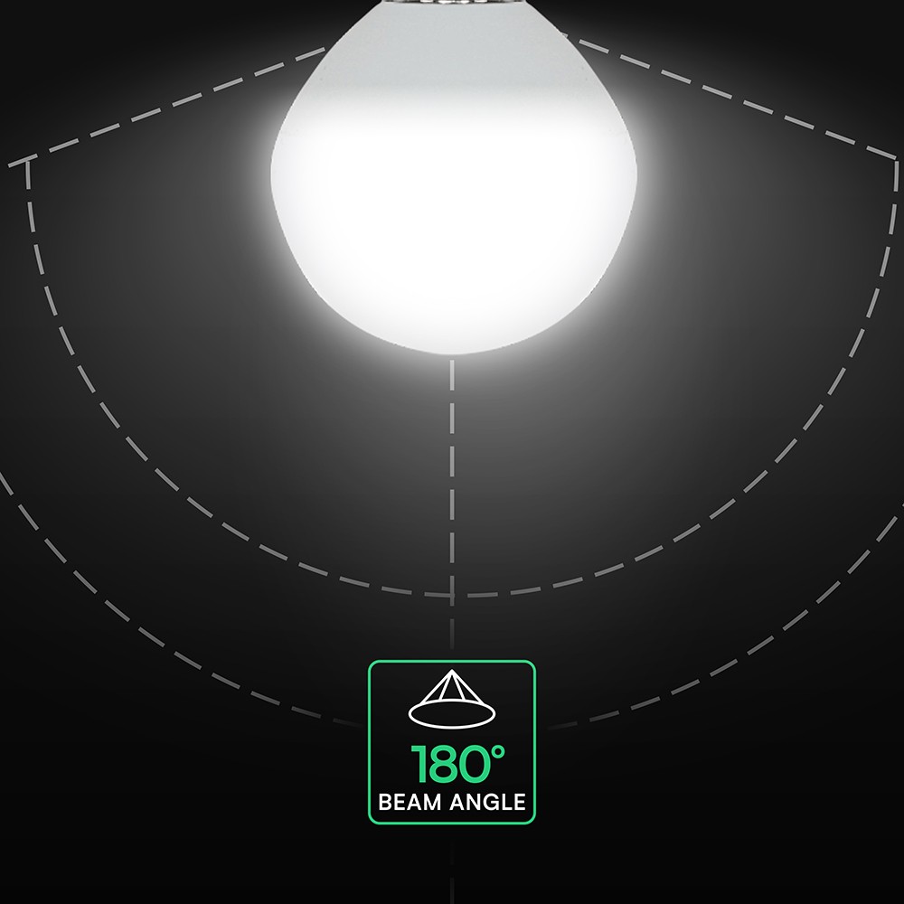 Pæren er designet i et holdbart plastikmateriale og har en spredning på 180 grader, der sikrer en jævn lysfordeling. Den er ideel til brug i rum, hvor der ønskes en hyggelig atmosfære.