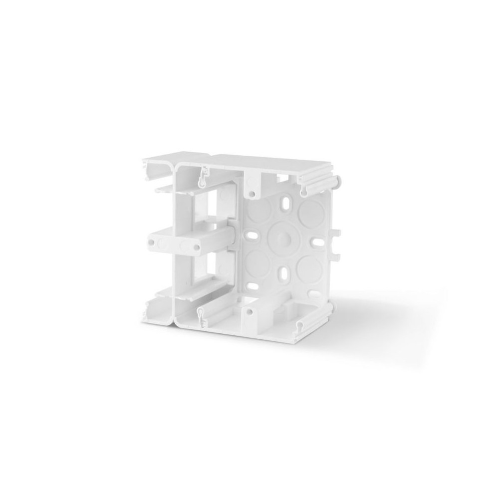 Denne overflademonteringsboks er designet til modulære installationer og leveres i en neutral hvid farve, der passer ind i de fleste miljøer. Boksen er fremstillet af holdbart PC plastik, hvilket sikrer lang levetid og modstandsdygtighed over for daglig brug.