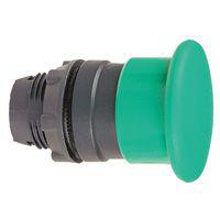 Harmony Style 5 paddetryk med fjederretur i sort kunststof. Udskifter Ø22 mm XA2-B serien. Grøn farve og 40 mm diameter.