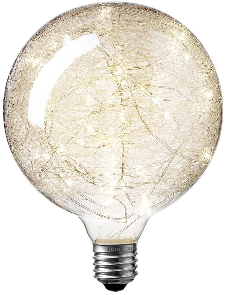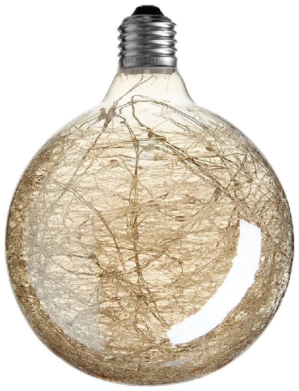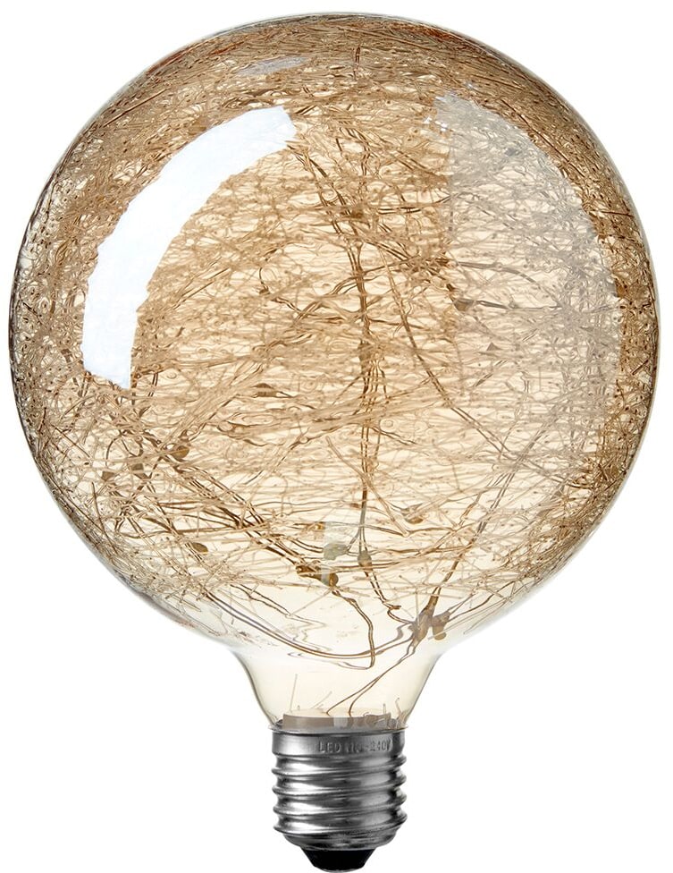 Globepæren Klokkeblomst er skabt til at skabe hyggelig belysning. Den har et gyldent glas og en indbygget mini LED lyskæde, der giver et dekorativt udtryk og et specielt, hyggeligt gyldent lys. Denne model har en diameter på 95 mm. Kombinér den med en fatning og ledning efter eget valg.