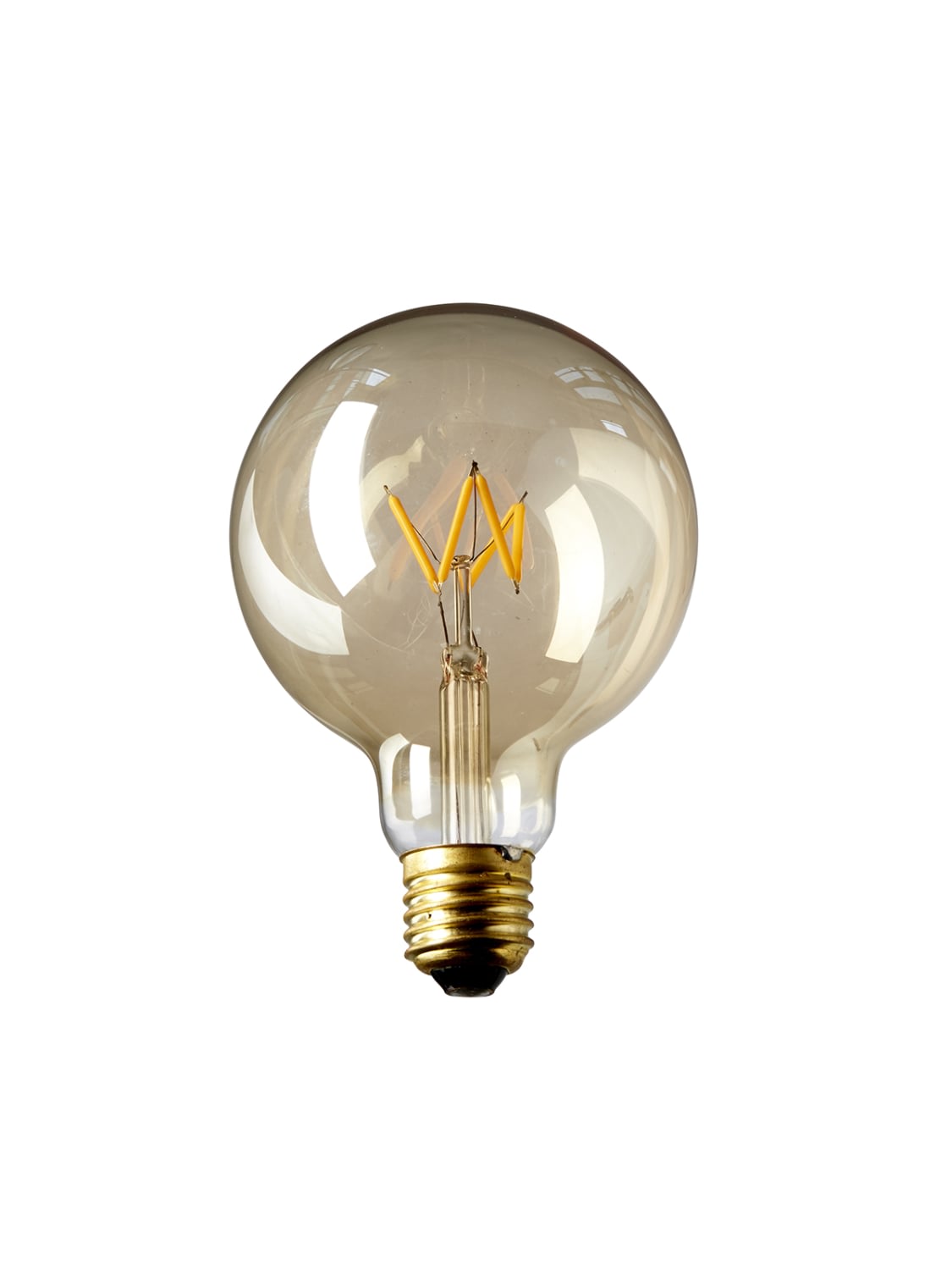 Flot LED globepære med gyldent glas og en diameter på Ø95mm. Pæren bruger 3W og skaber en hyggelig atmosfære. Kan dæmpes.