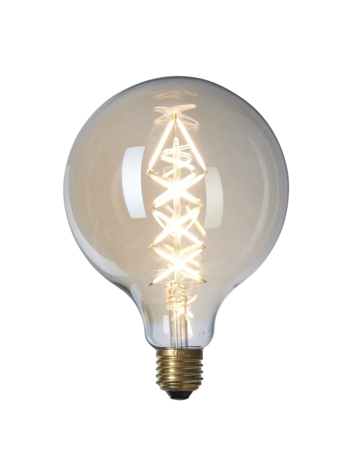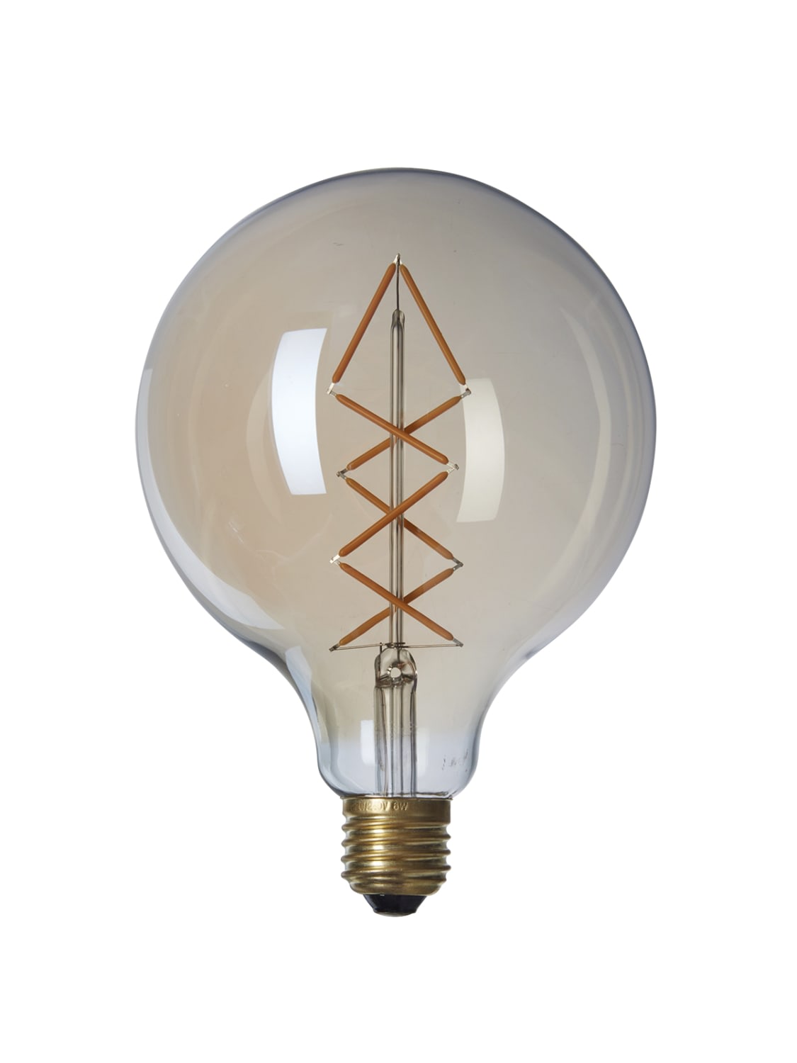 Elegant LED pære med gyldent glas og en diameter på Ø125mm. Giver et varmt hvidt lys på 2200K og har en effekt på 6W.