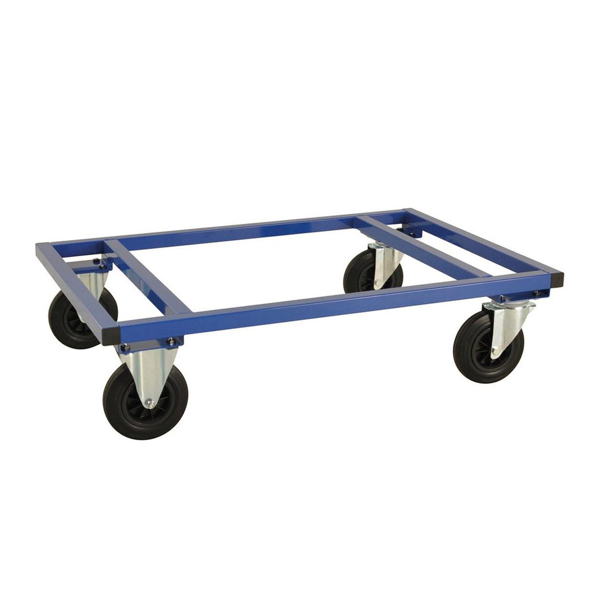 Denne pallevogn passer til paller med målene: 800x600 mm, 1200x800 mm og 1200x1000 mm. Den er pulverlakeret og fuldsvejst, og fås i forskellige modeller med eller uden bremser.