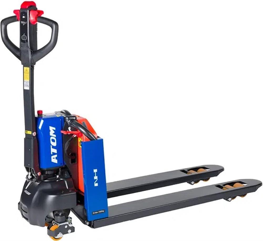 Let og manøvredygtig, selvkørende palleløfter med ekstern lader, Curtisstyring, elektrisk løftefunktion og stærk DC motor. Kapacitet: 1500 kg.