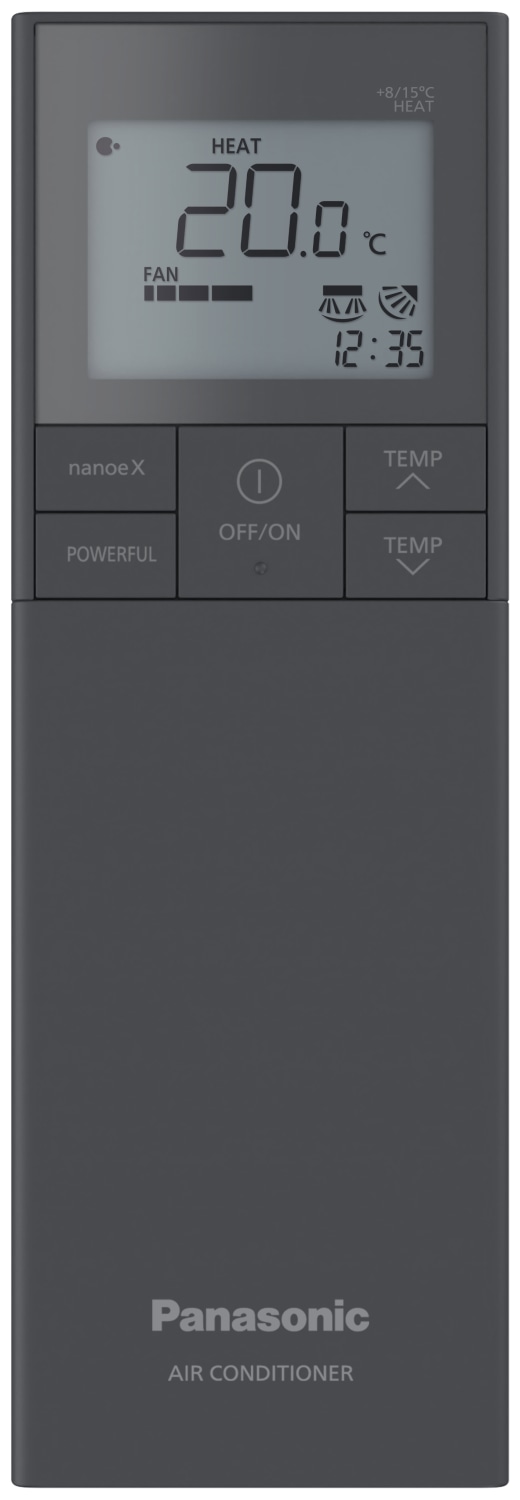 Panasonic CS-HZ35ZKE-H L/L indedel i grafit gray. Med indbygget wifi styring, fireplace funktion og NanoeX luftrensning. SCOP 5,3 (A+++), SEER 8,6 (A+++).
