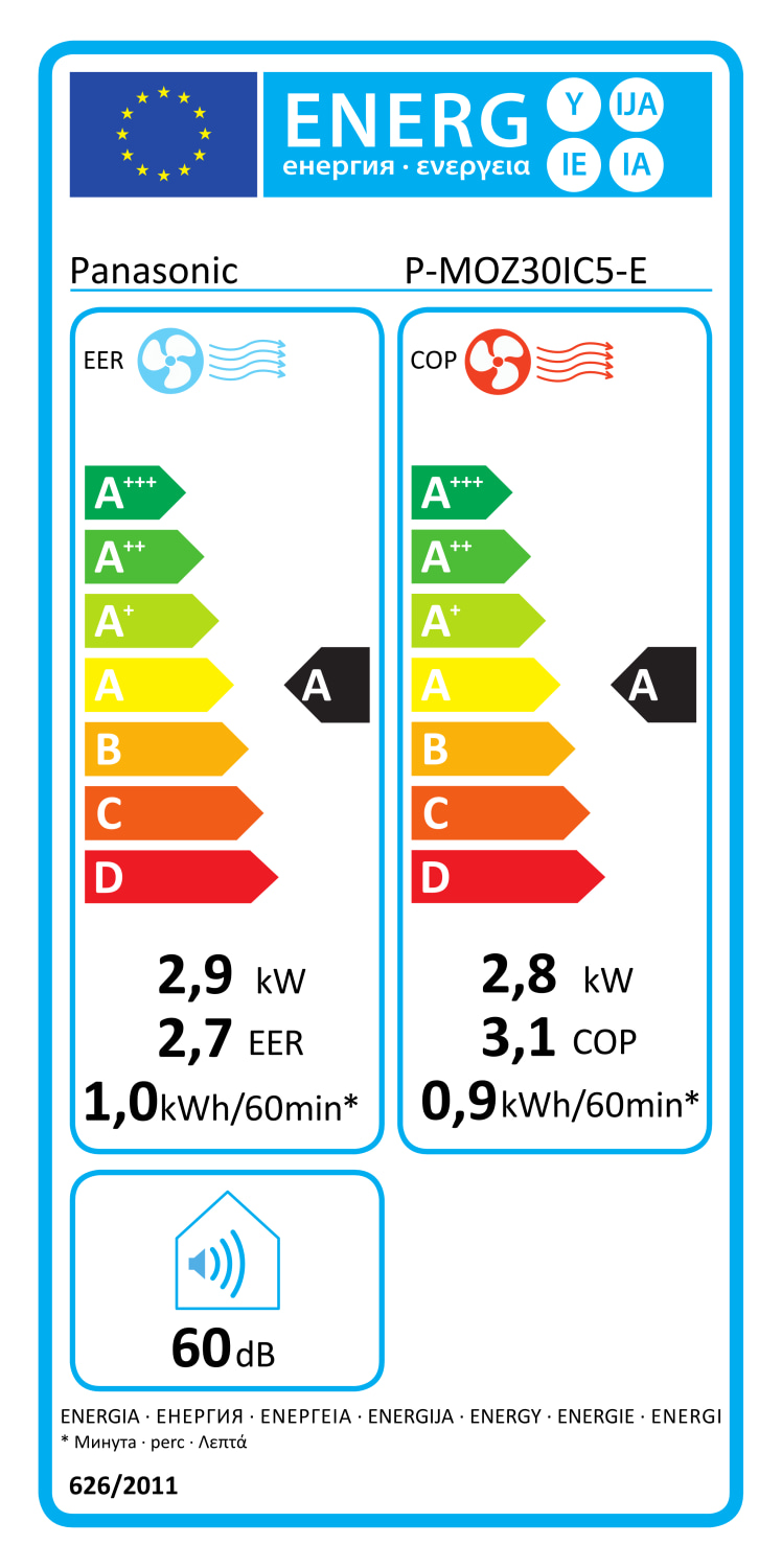 - Kapacitet: 3,0 kW (køl) og 3,0 kW (varme)