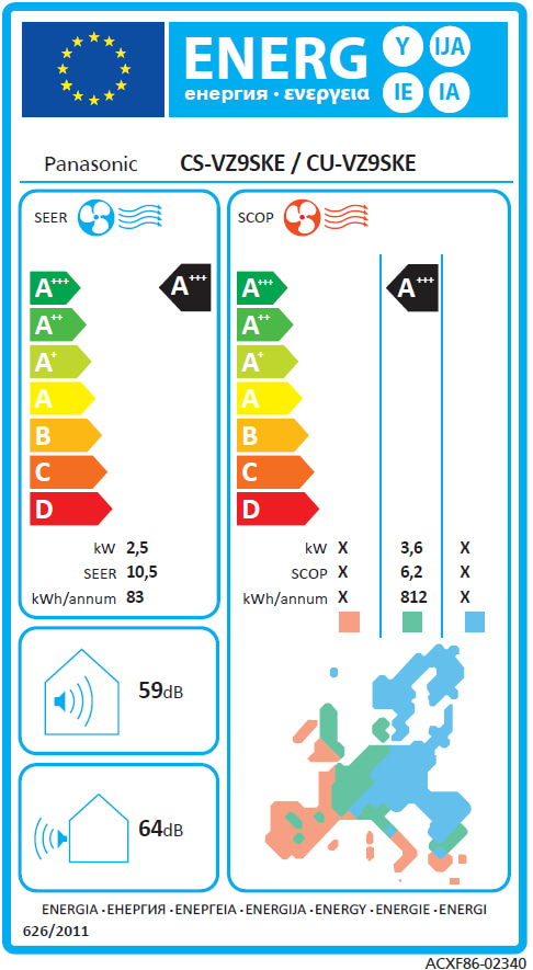 Med en SCOP på 6,20 og SEER på 10,50 opnår varmepumpen energiklasse A+++, hvilket indikerer en meget høj energieffektivitet. Den lave lydtryksniveau på kun 18 dB i S-Lo tilstand sikrer en behagelig og støjsvag drift.