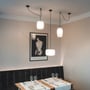 Pantilo Oval PD pendellampen stråler med sin elegante glasskærm og unikt design. Den 2,5 meter lange ledning, som kan afkortes, dækker de fleste installationshøjder.