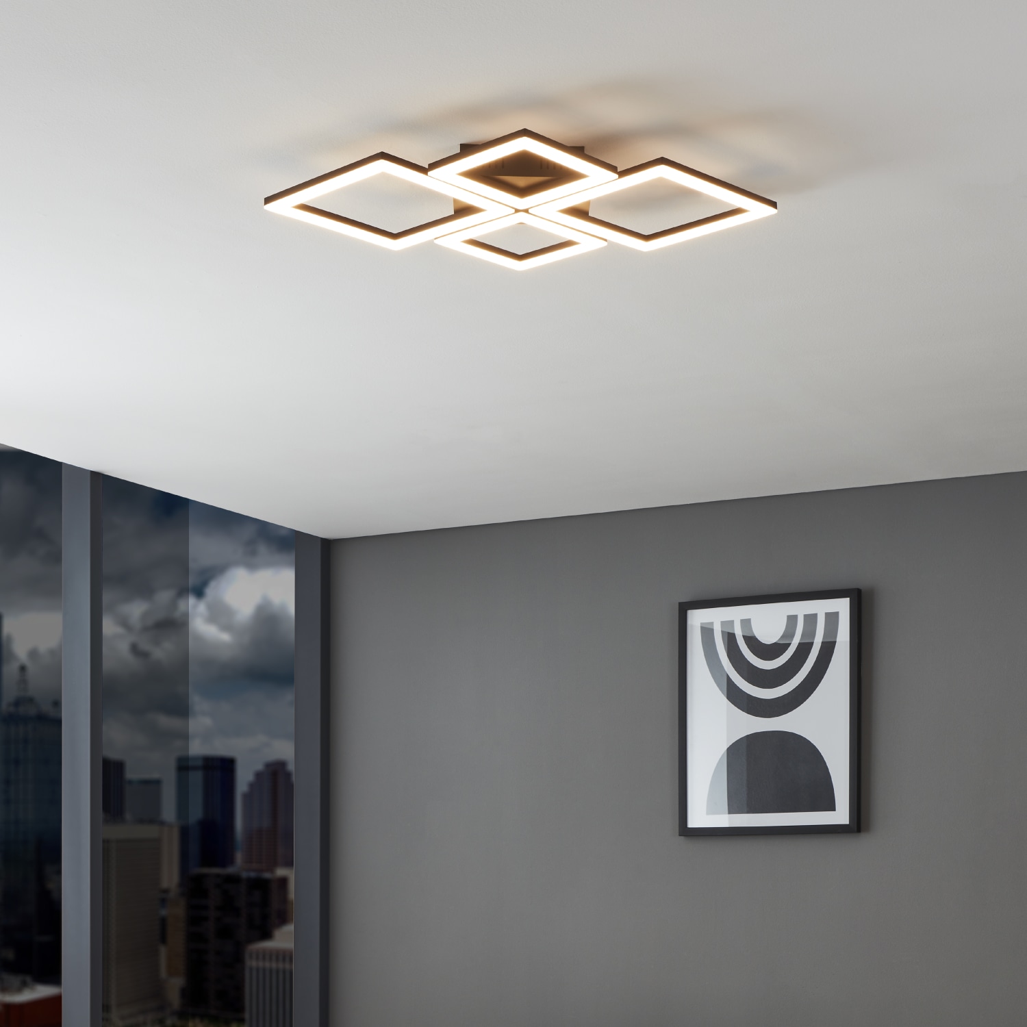 Denne moderne loftlampe fra Paranday-Z kombinerer funktionalitet med smart teknologi. Med en bredde på 430 mm og en længde på 470 mm passer den ind i de fleste rum. Lampen er fremstillet i stål og har en mat sort finish, der giver et stilrent udtryk.