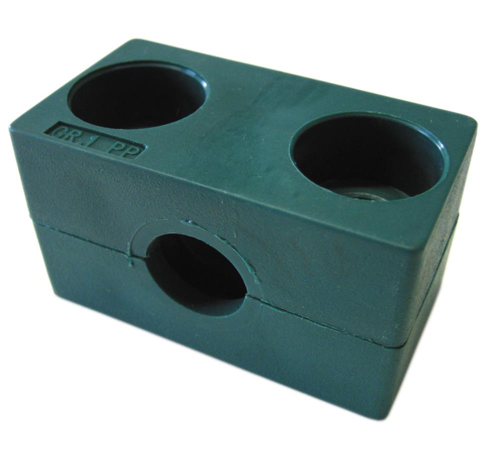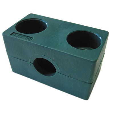 Parker RCP228X rørbærer i polypropylen til hydrauliske systemer. Med 2 montagehuller og godkendelser fra Lloyd's Register EMEA og DNV-GL. Dimension: 28mm.