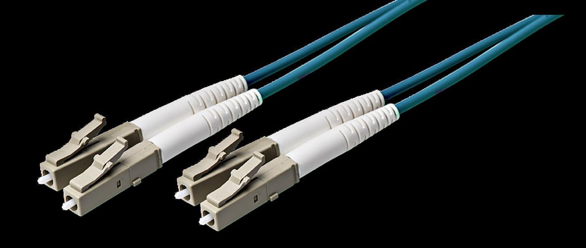 Fiberoptisk patchkabel med LC/PC til LC/PC konnektorer, MultiMode 50/125 µm OM3, Duplex, 2mm LSZH kappe, Aqua, 20 meter.