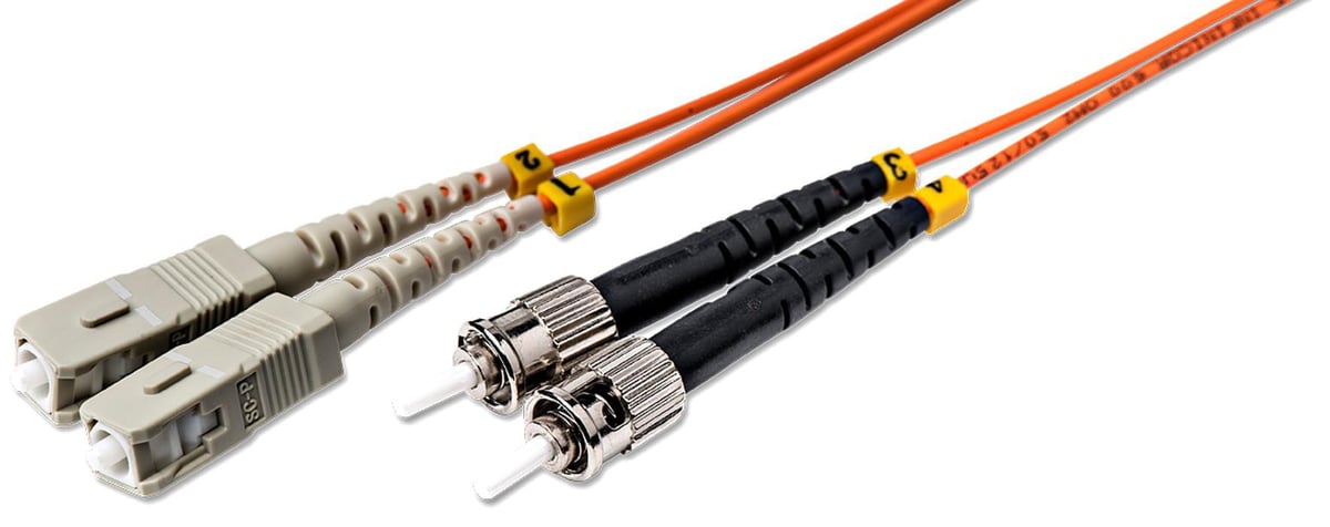 Fiberoptisk patchkabel SC/PC til ST/PC, MultiMode 62,5/125 m OM1, Duplex, 2mm LSZH kappe, orange, 3m.