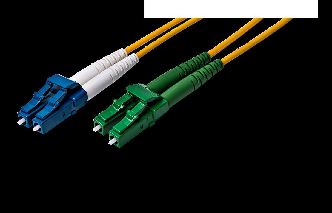 Fiberoptisk patchkabel LC/APC til LC/UPC, SingleMode 9/125 µm G657A, Duplex, 2mm LSZH kappe, gul, 10m.