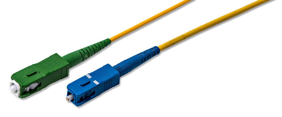 Fiberoptisk patchkabel med SC/APC til SC/UPC konnektorer, SingleMode 9/125 μm G657A, Simplex, 2mm LSZH kappe, gul, 15m.