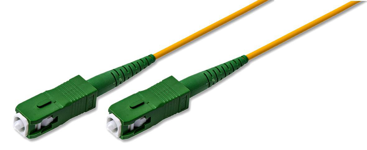 Fiberoptisk patchkabel med SC/APC til SC/APC stik, SingleMode 9/125 μm G657A, Simplex, 2mm LSZH kappe, gul, 5m.