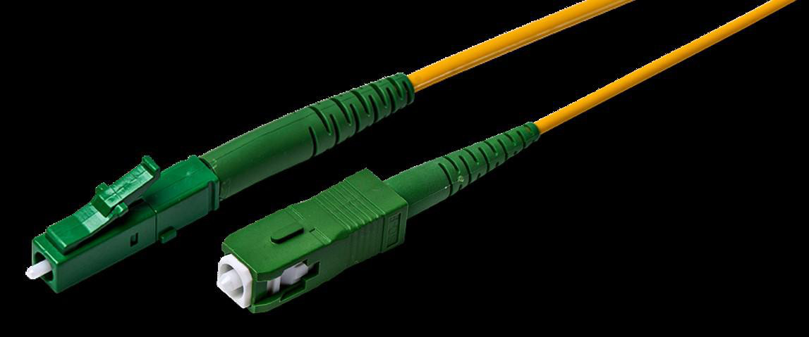 Fiberoptisk patchkabel med LC/APC til SC/APC konnektorer. SingleMode 9/125 m G657A, Simplex, 2mm LSZH kappe, gul, 7m.