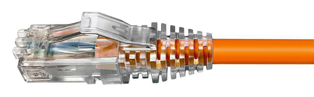 High-performance patchkabler, der understøtter NETCONNECT Channel Specifikationer. Standard transparente slimline aflastning.