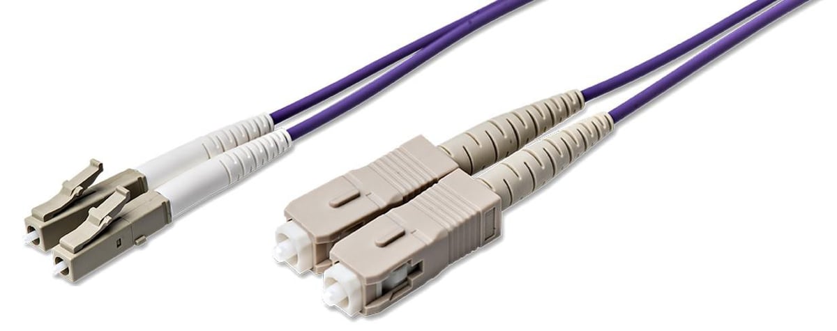 Fiberoptisk patchkabel LC/PC til SC/PC, MultiMode 50/125 m OM4, Duplex, 2mm LSZH kappe, Purple, 10m.