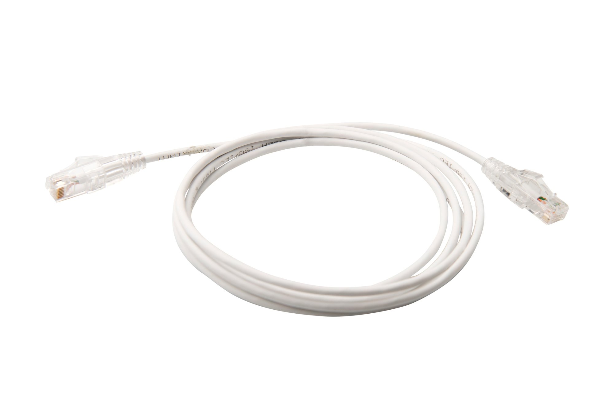 Slankt UTP Kat.6A patchkabel fra Lan-Com, 5 meter langt med LSZH-kappe i hvid.