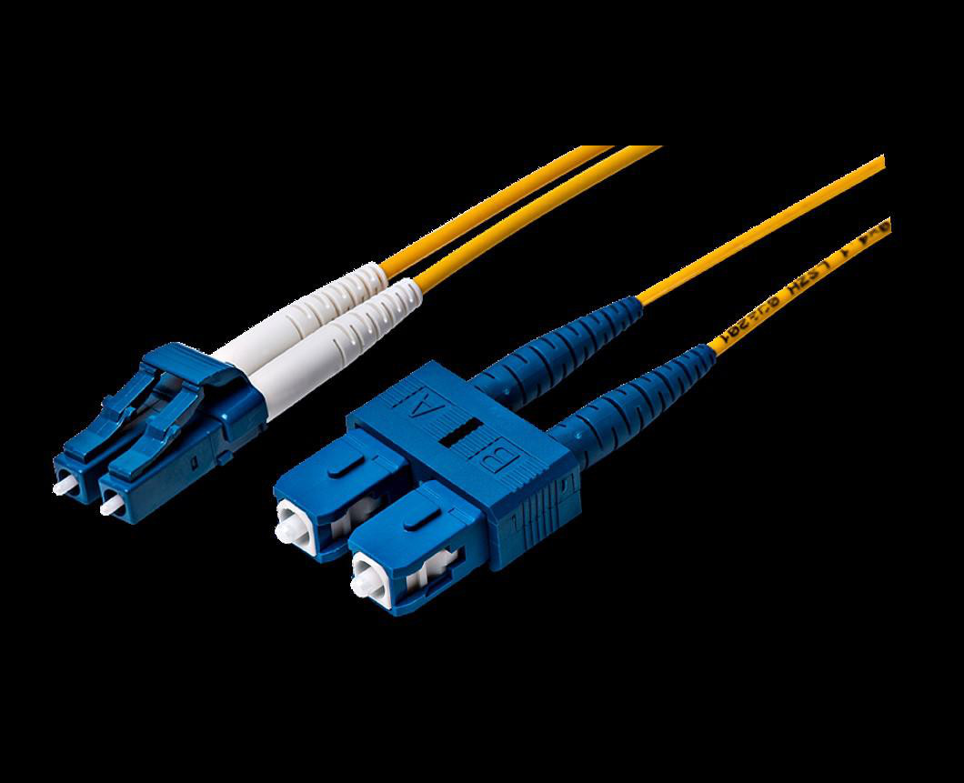 Fiberoptisk patchkabel LC/UPC til SC/UPC, SingleMode 9/125 m G657A, Duplex, 2mm LSZH kappe, gul, 10m.
