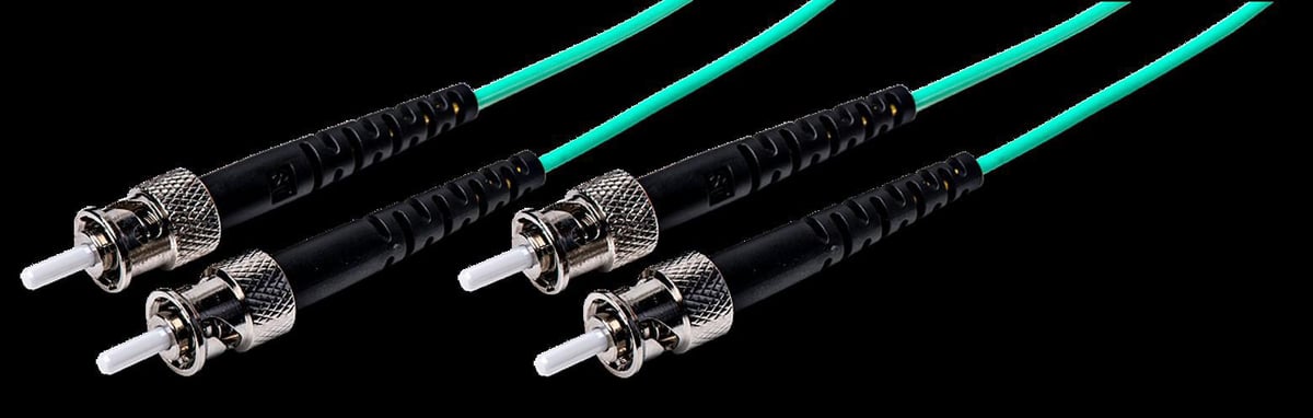 Fiberoptisk patchkabel ST/PC til ST/PC, MultiMode 50/125 m OM3, Duplex, 2mm LSZH jacket, Aqua, 5m.