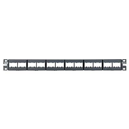 Dette Panduit patchpanel har 24 porte og kabelaflastning. Det er sort og passer til alle typer Mini-Com stik. Højden er 1HE.
