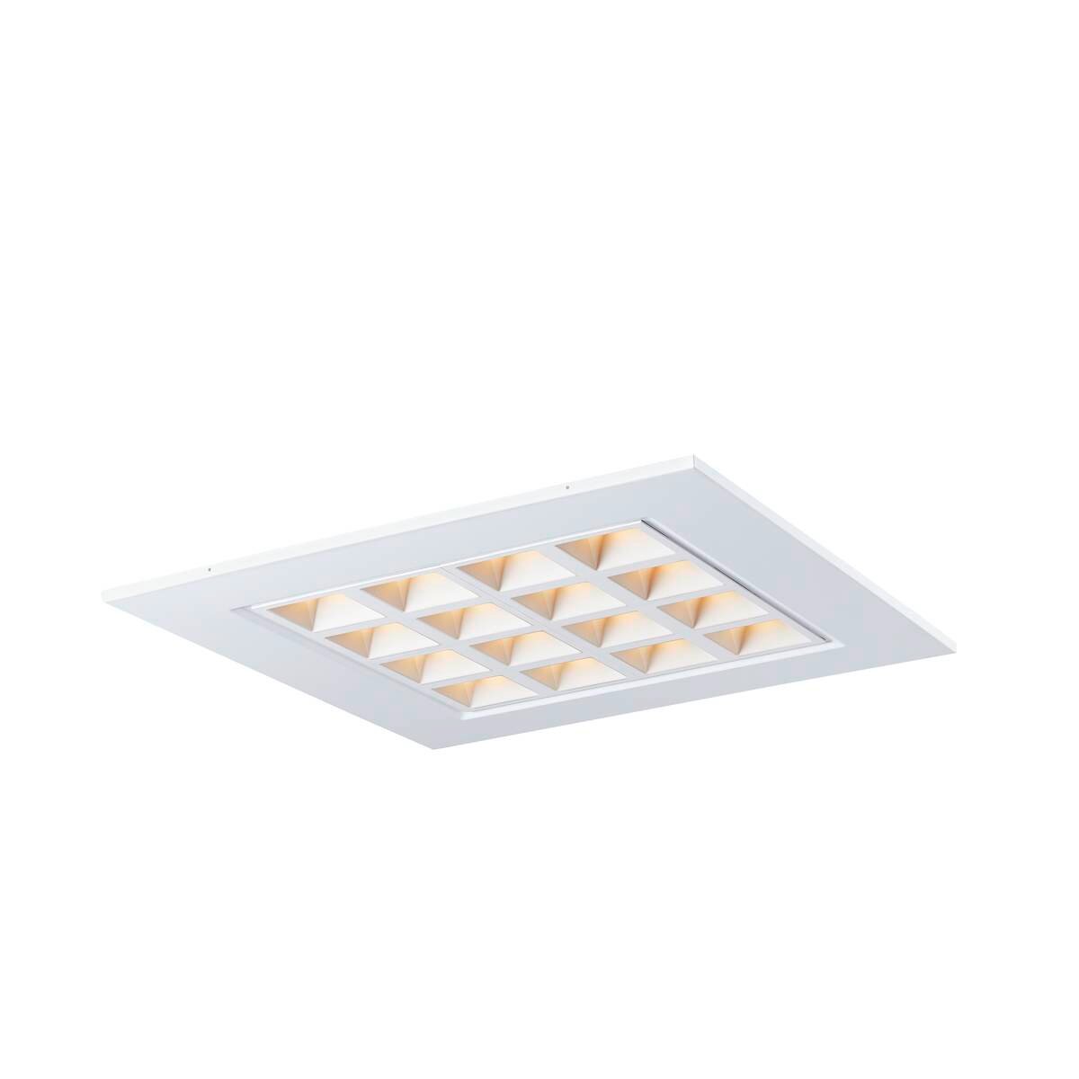 PAVANO 600x600 er en elegant LED loftlampe til indendørs brug. Den leveres i hvid med en farvetemperatur på 3000 K og en UGR værdi under 19.