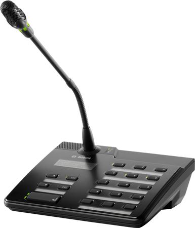 Kaldestation med display til PAVIRO-systemet, 15 programmerbare taster, svanehals mikrofon og permanent overvågning, EN54-16 certificeret.