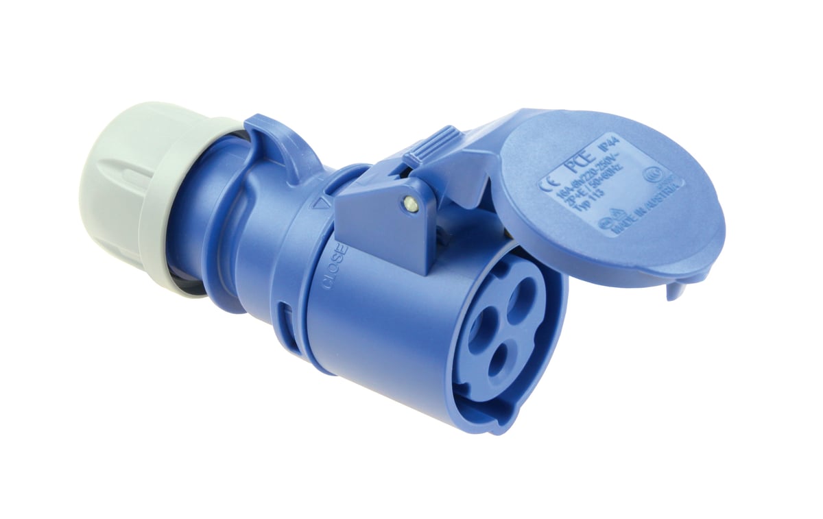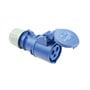 PCE CEE mellemled med 3P, 16A og 230V. IP44-klassificeret og blå.