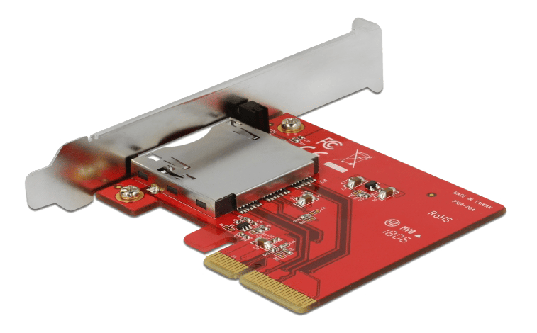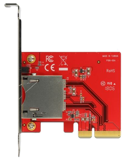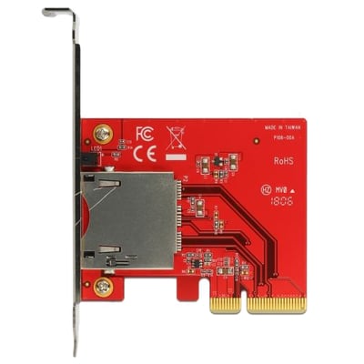 Dette PCI Express-kort fra Delock udvider din PC med et eksternt CFexpress/XQD-slot. Kortet giver dig mulighed for at læse og skrive data på CFexpress eller XQD hukommelseskort.