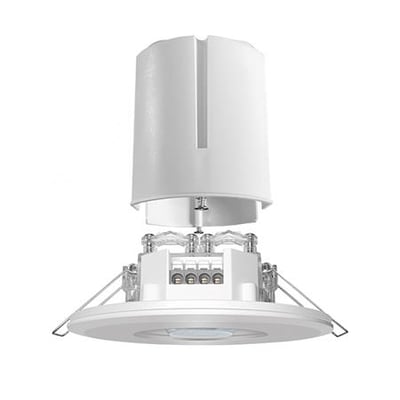 Design-tilstedeværelsessensor med fremragende detektering (min. 8 m i diameter). Til loftmontage. Med PIR-sensor, lyssensor og afbryderindgang.