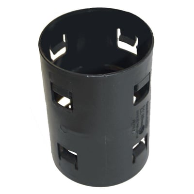 Effektiv samlemuffe designet til drænrør med en dimension på 125 mm, fremstillet i slidstærkt PE-materiale.