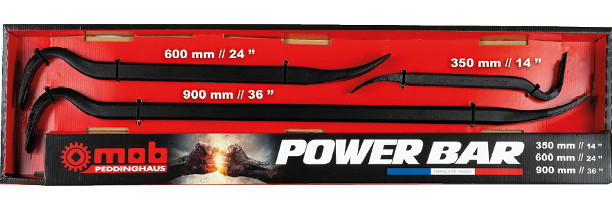 Peddinghaus PowerBar kobensæt i kraftig oval udførelse. Optimeret vinkel for større løfteeffekt. Sættet indeholder størrelserne 350, 600 og 900 mm.