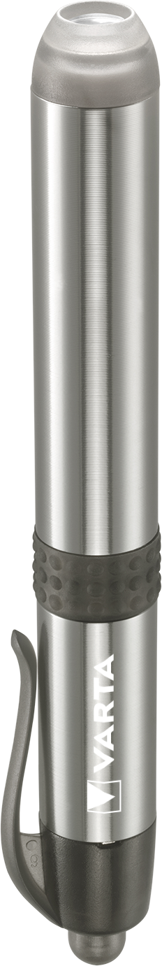 VARTA Pen Light i sølv. Kompakt lommelygte med 3 lumen, ideel til nødsituationer, strømafbrydelser og diagnosticering.