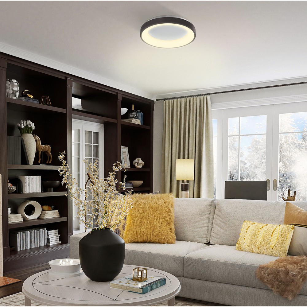 Denne moderne 72W LED loftslampe kombinerer funktionalitet med et stilfuldt design i mat sort. Med en størrelse på 450x450mm og en dybde på 80mm passer den elegant ind i de fleste rum.