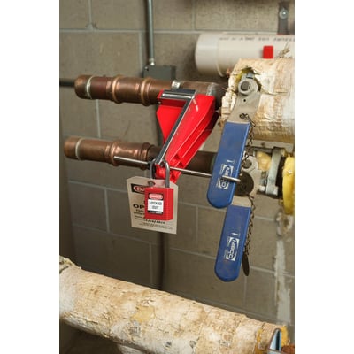 Permanent lockout-enhed til kuglehaner. Eliminerer behovet for at vælge og bære LoTo-enheder. Passer til kugleventiler med en diameter på 1 til 10 cm.
