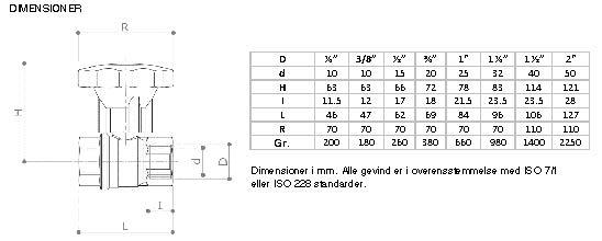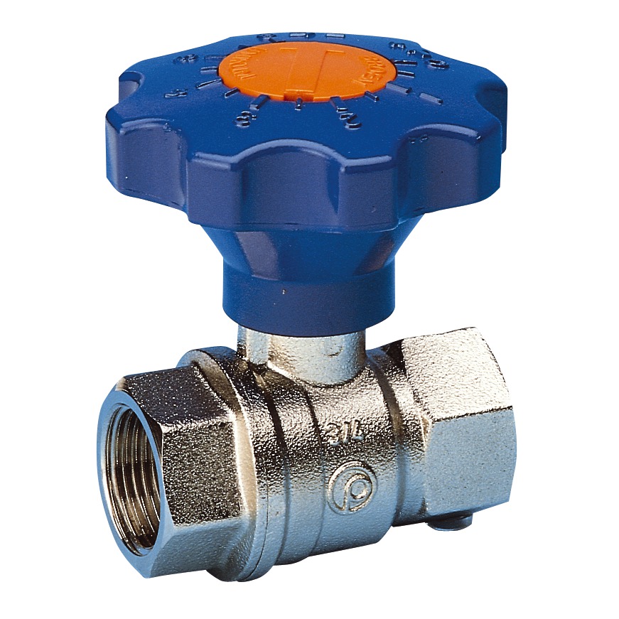 Robust kuglehane med DIN gevind og TEA overfladebehandling. Muffe/muffe tilslutning og gearhåndtag for nem betjening.