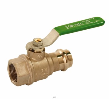 Kuglehane med presfittings, grønt stålhåndtag, nippel/pres. Fremstillet i blyfri og afzinkningsfri messing CW511L.