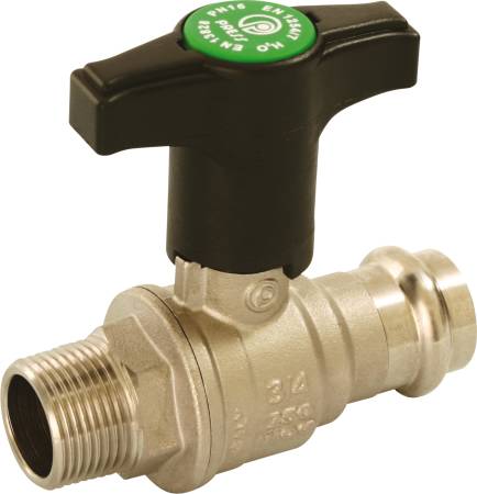 Kuglehane med presfittings, langt sort plast T-greb og fremstillet i blyfri og afzinkningsfri messing CW511L.