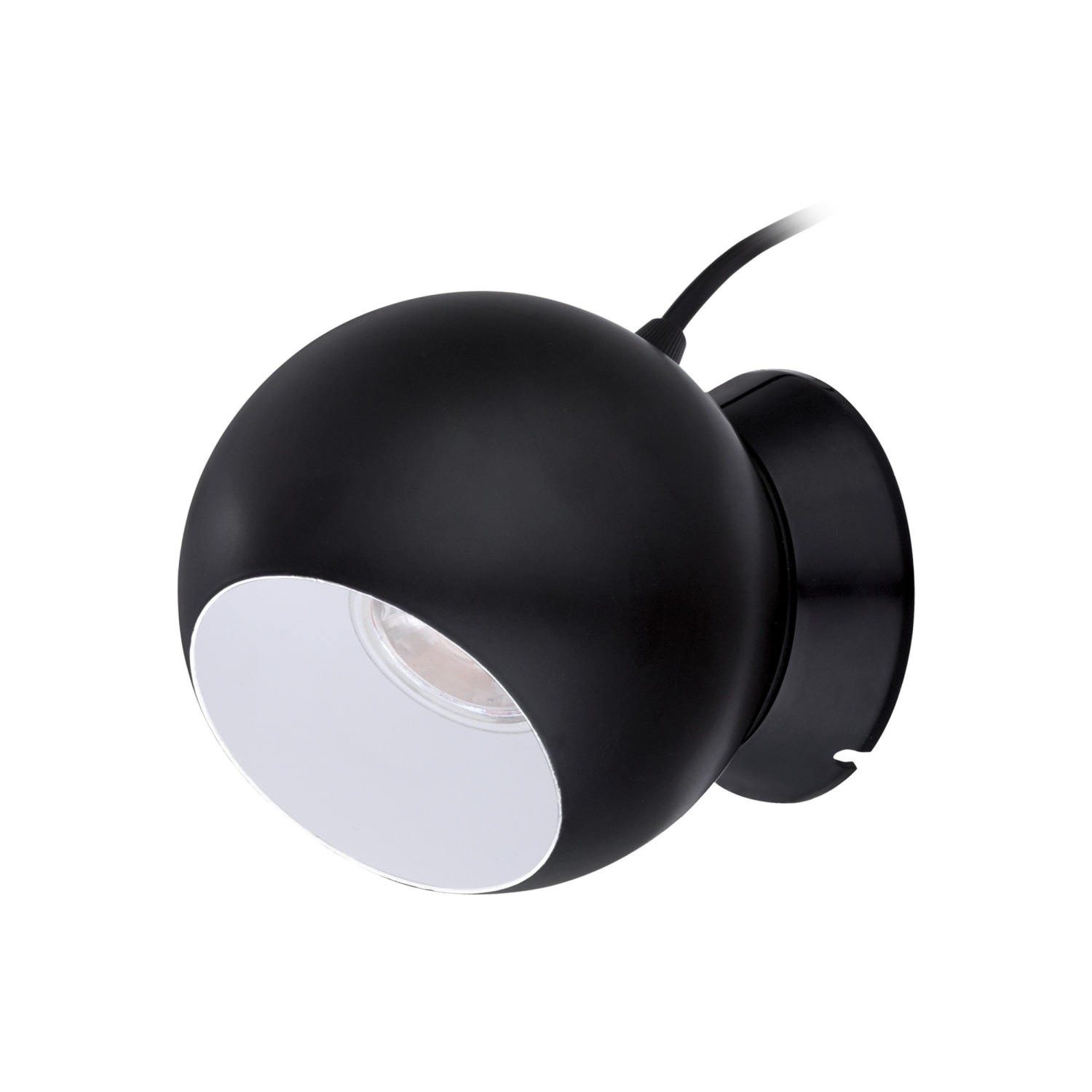 Petto magnet væglampe i sort metal med en højde på 13,5 cm og en diameter på 10,5 cm. Inkluderer ledning med afbryder og stik.