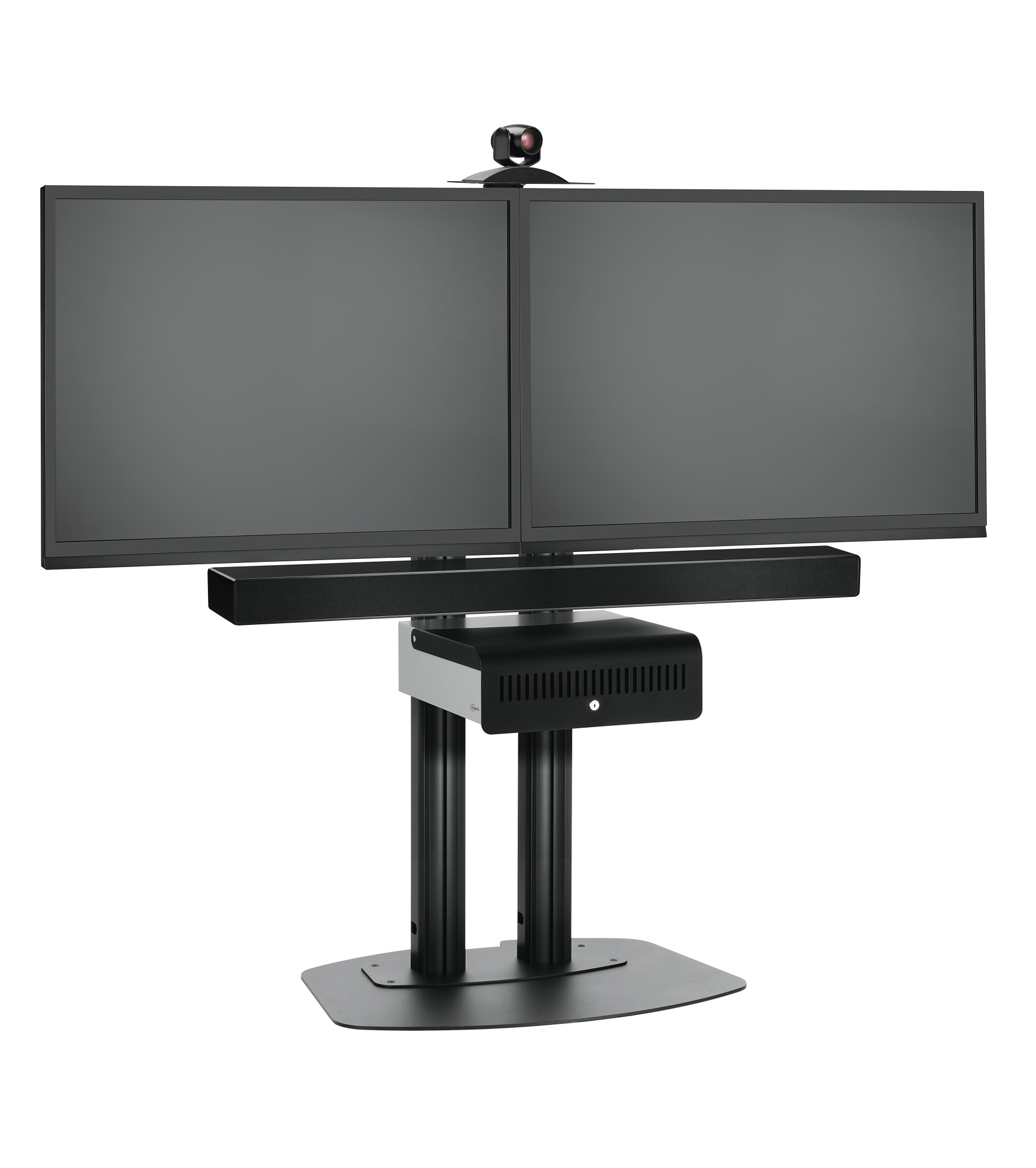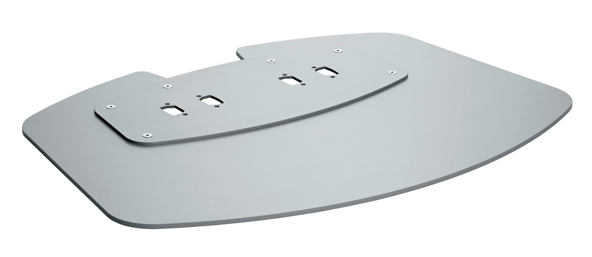 Ekstra stor gulvplade i sølv til professionel AV-løsning. Sikrer stabilitet og et stilrent udseende.