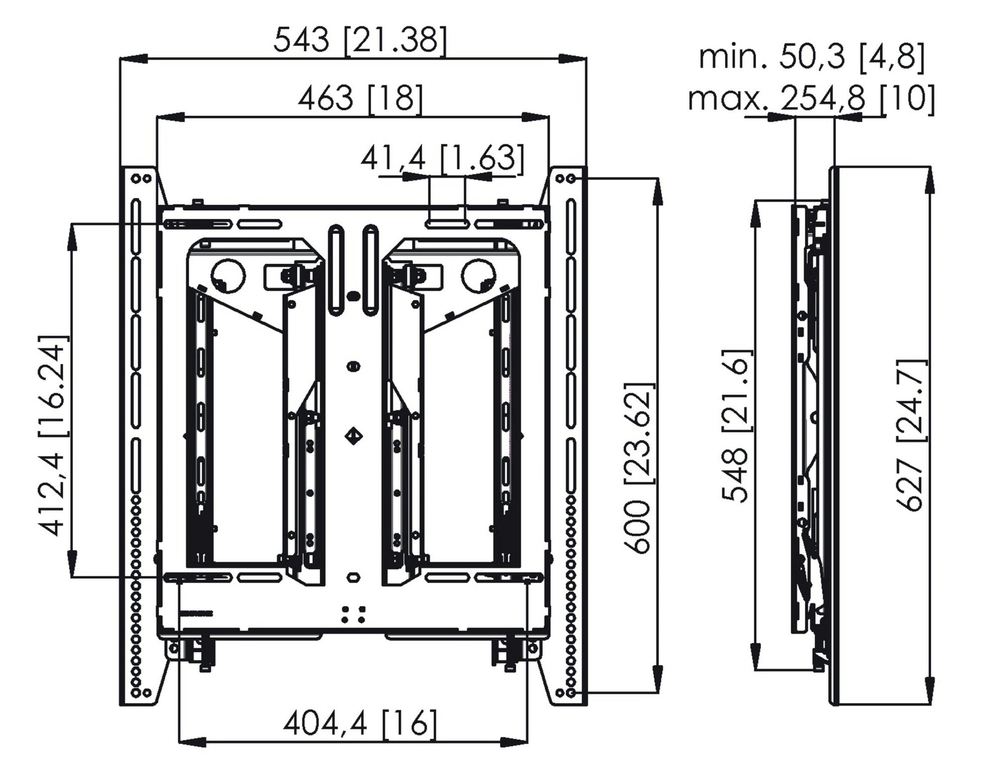 PFW 6885 er et slankt pop-out modul til stående montering af videovæg. Afstanden mellem display og væg er kun 50 mm. Fjederlås frigøres let ved et tryk på displayet.