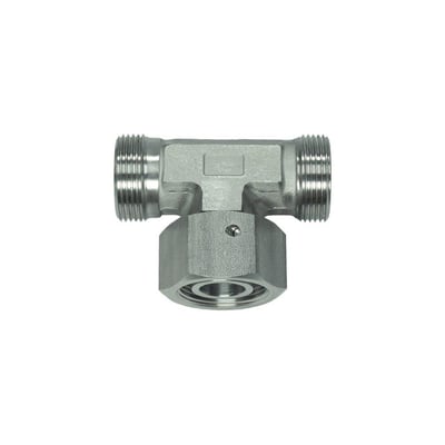 Hydraulisk, syrefast T-stykke til direkte hydraulikrør montage samt omvendt formonteret omløber på den ene side til direkte montage på fittingskrop. Leveres uden omløbere og skæreringe.