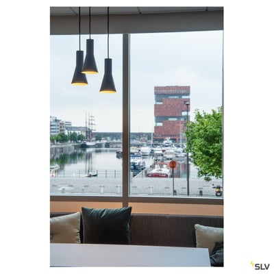 Den koniske 230V pendelserie Phelia åbner for en lysverden af muligheder. Lampen i farven sort/guld har en rund loftrosette. Med den indbyggede E27 sokkel er lampen egnet til LED- og energisparepærer. Lampens pendel er 2 meter lang.