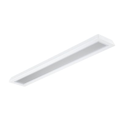 Slankt, påbygget armatur med behageligt og blændfrit lys, der overholder standarder for kontorbelysning. Hvidlakeret stålhus med integreret styring.