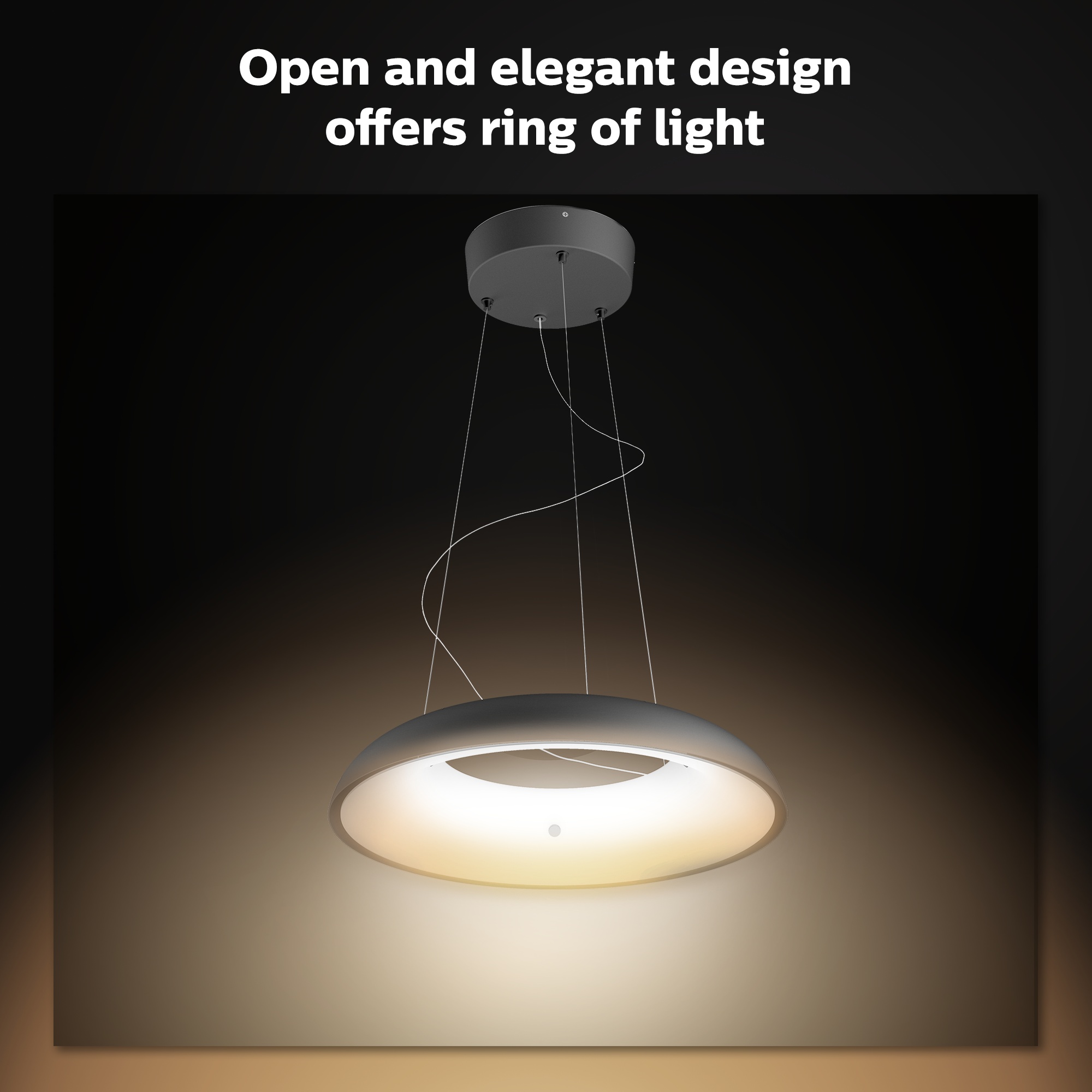Philips Hue White Ambiance Amaze pendlen i sort har et unikt design, der passer perfekt ind i ethvert køkken eller stue. Få et naturligt varmt til køligt hvidt lys og indbyggede belysningsløsninger via Bluetooth og den medfølgende Hue Dimmer switch. Tilføj en Hue Bridge, og få flere intelligente belysningsfunktioner.