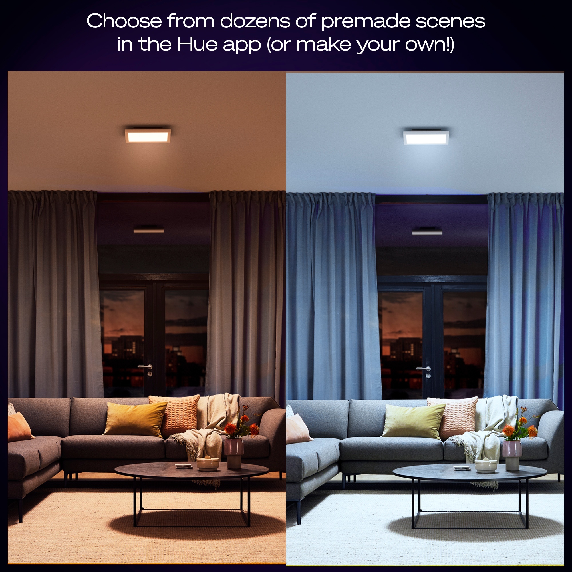 Philips Hue Aurelle er en serie af panellamper med White Ambiance, der giver dig mulighed for at skifte mellem kolde og varme toner af hvidt lys. Skab den perfekte stemning i dit hjem med dette elegante loftspanel.