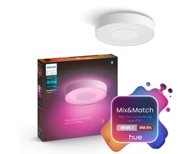 Philips Hue Being er en diskret og enkel loftslampe, der passer ind i ethvert rum. Lampen er udstyret med White Ambiance, hvilket giver dig mulighed for at justere din belysning efter humør og anledning. Skift mellem kolde og varme toner af hvidt lys for at skabe den perfekte atmosfære. Skab en afslappende og hyggelig atmosfære med varme, gullige toner, eller få mere energi om morgenen eller til din arbejdsdag med en køligere, blålig nuance.